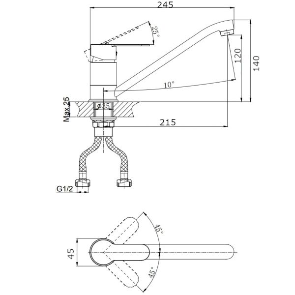 Смеситель для кухни RUSH арт. TE2835-26 с поворотным изливом с металлической ручкой из коллекции Tenerife изготовлен из высококачественной латуни и имеет рычажное управление.В смеситель установлен картридж D-35 с керамическими пластинами. Высота смесителя 140 мм. Излив поворотный 215 мм. Высота излива до аэратора 120 мм. Аэратор изготовлен из пластика с нержавеющим корпусом, угол наклона - 10 гр. В комплекте универсальная присоединительная группа для установки на горизонтальную поверхность, гибкая подводка с латунными гайками 40 см - 2шт, фум-лента, индивидуальный пакет, паспорт, гарантийный талон.