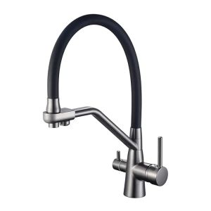 Смеситель для кухни с гибким изливом и подключением фильтра Maretti Eleganza EN31RGF14, оружейная сталь