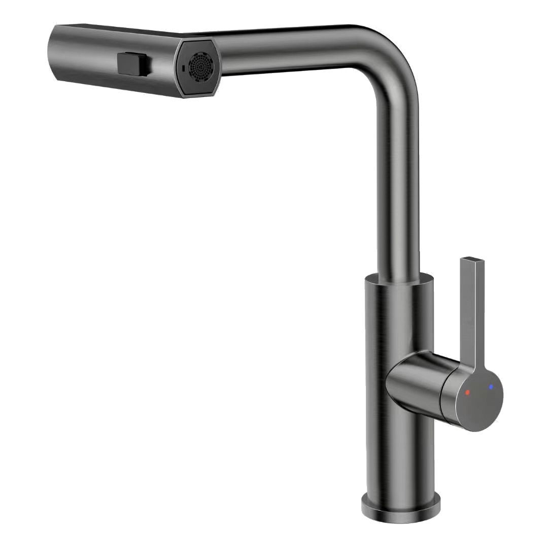Смеситель для кухни с высоким поворотным изливом и вытяжной лейкой 3-функц. RUSH Tinos арт.TI3732-18Grey цвет графит с металлической ручкой изготовлен из нержавеющей стали SUS304 и имеет рычажное управление. В смеситель установлен картридж D-35 с керамическими пластинами. Высота смесителя 398мм. Излив поворотный и вытяжной с поворотной лейкой с 3 функциями. Высота излива до аэратора 257мм. Аэратор изготовлен из пластика. В комплекте гибкая подводка с гайками 60 см - 2шт, универсальная присоединительная группа, индивидуальный пакет, паспорт, гарантийный талон.