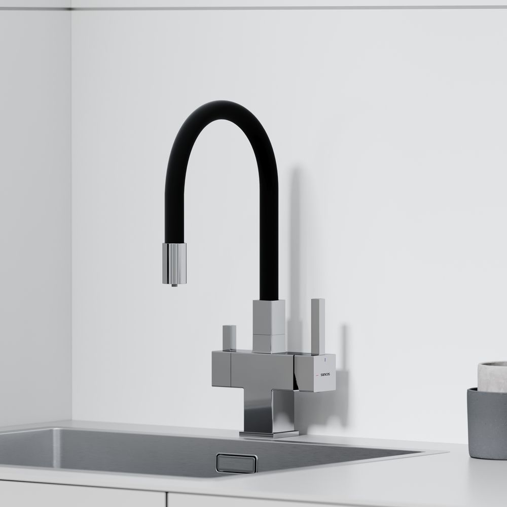 Смеситель для кухни SANCOS Arno с гибким изливом и возможностью подключения фильтра для воды, цвет хром, арт. SC4005CHФункция "Холодный старт" - при включении смесителя активируется холодной поток, для экономии горячей водыАэратор, гибкая подводка, ключ и крепления для монтажа
