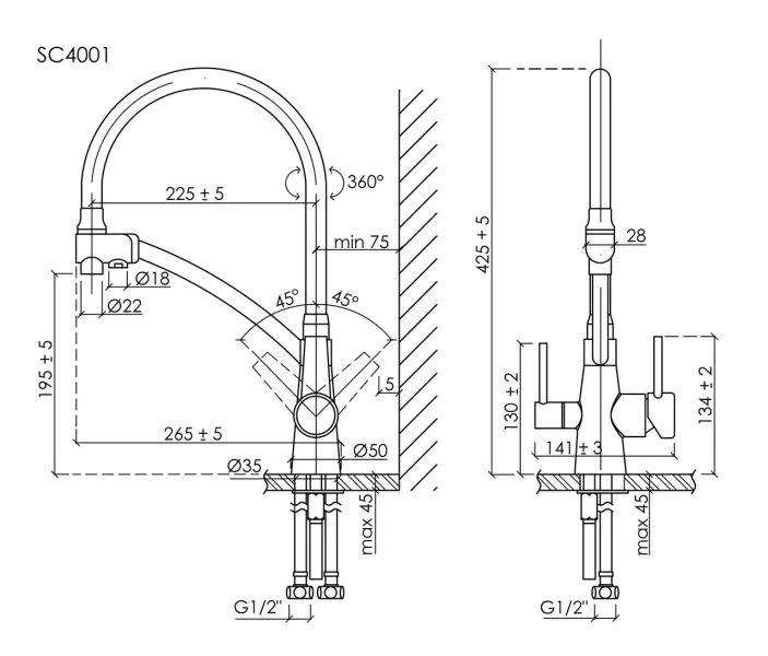 Длина излива, см:22.5
