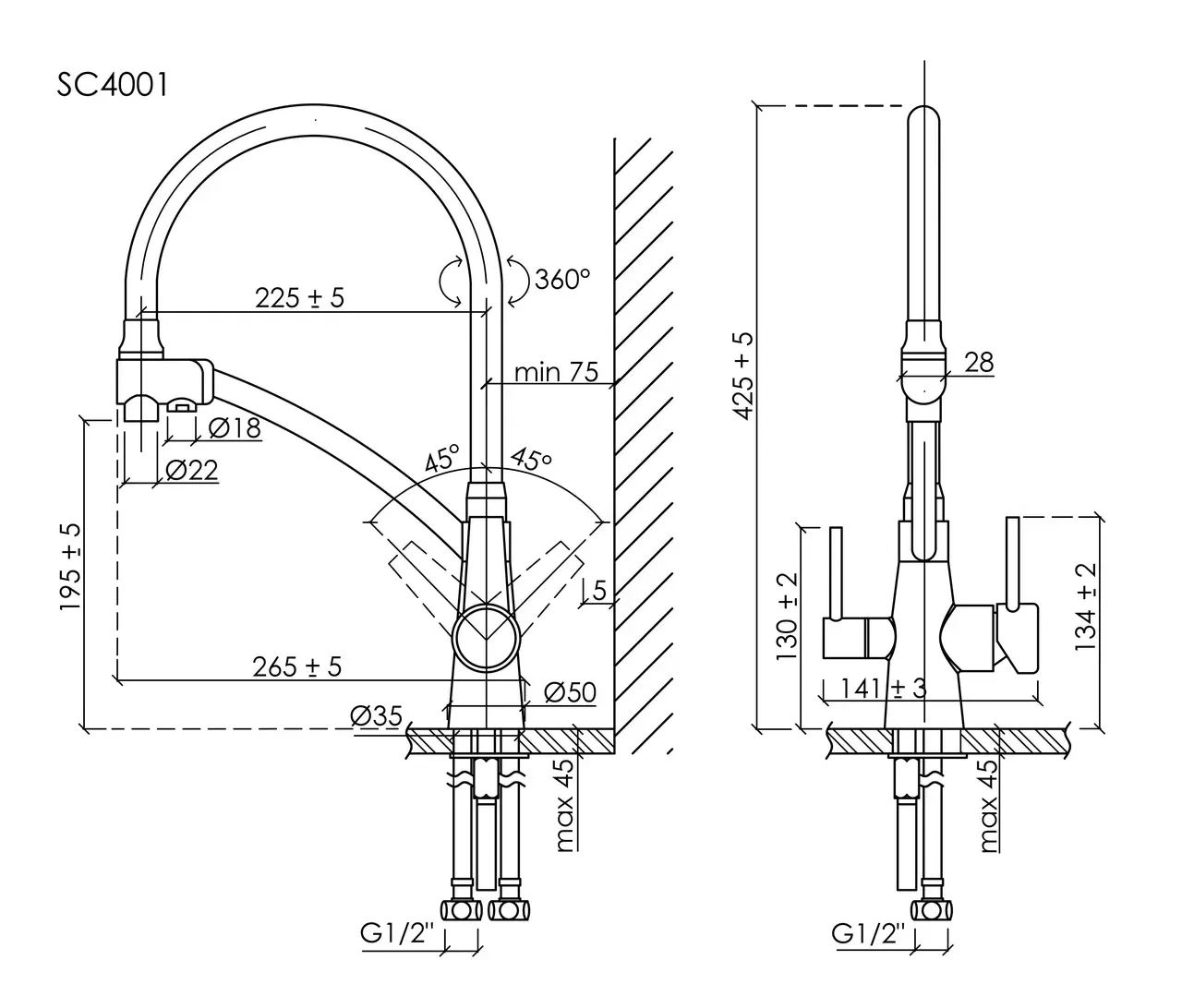 • Высота смесителя: