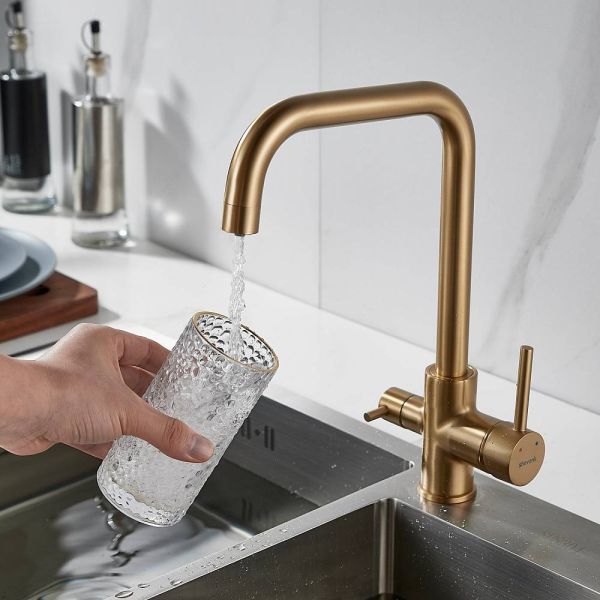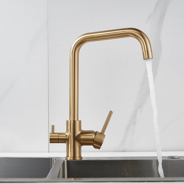 Смеситель для кухни Shevanik S228G с подключением фильтра золотой сатин купить