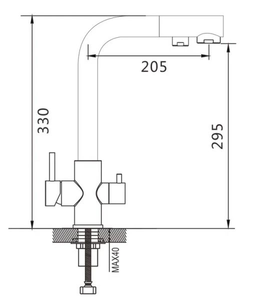 Смеситель для кухни с подключением фильтра Shevanik S328, хром.Управление: рычажное.Вращение излива: да.Выдвижной излив: нет.Гибкий излив: нет.Высота:33.