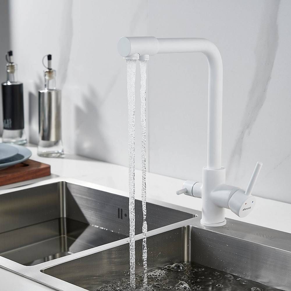 Смеситель для кухни Shevanik S328C с подключением фильтра белый купить