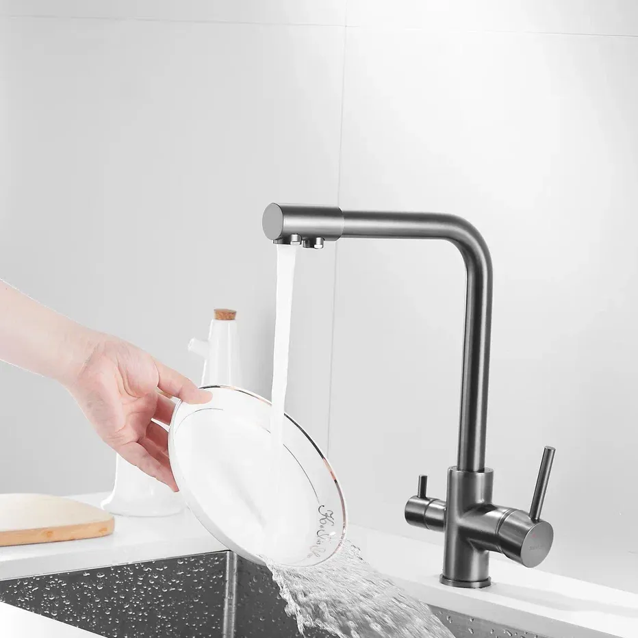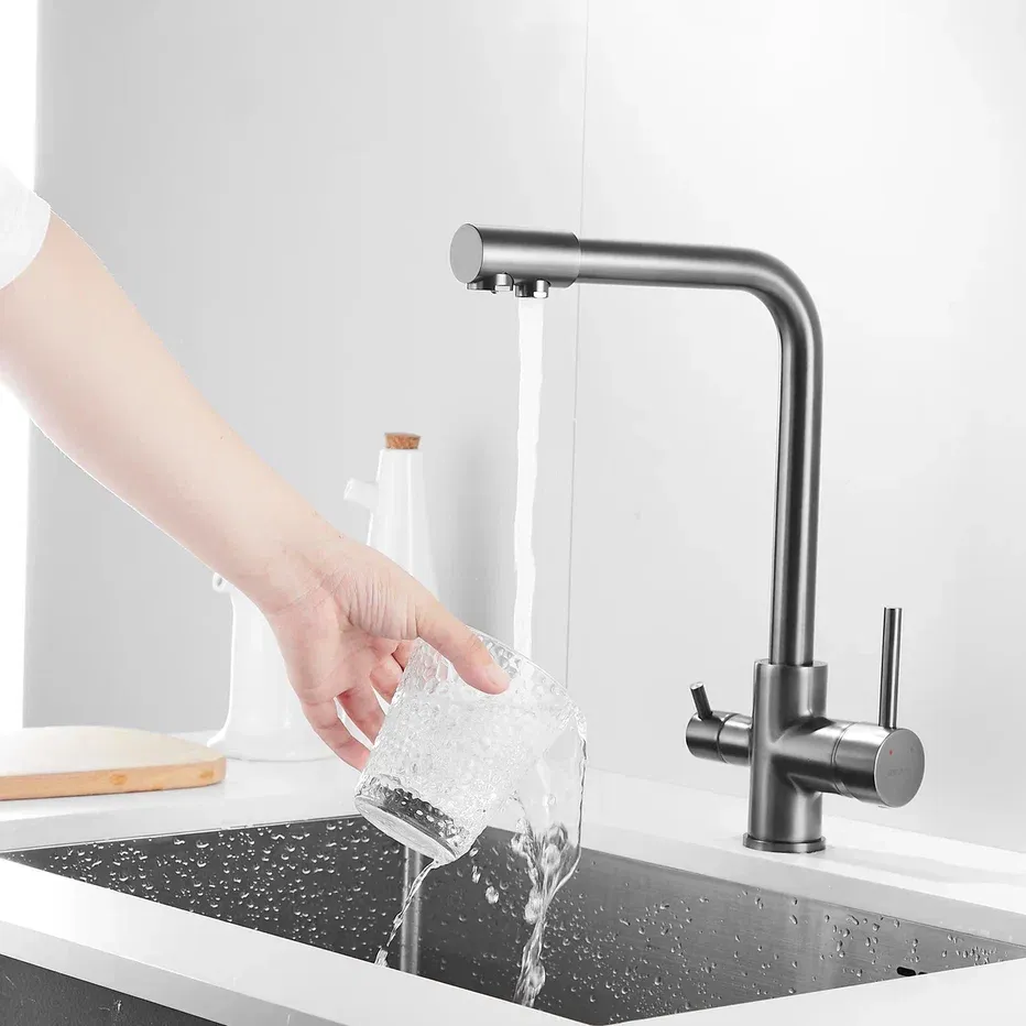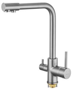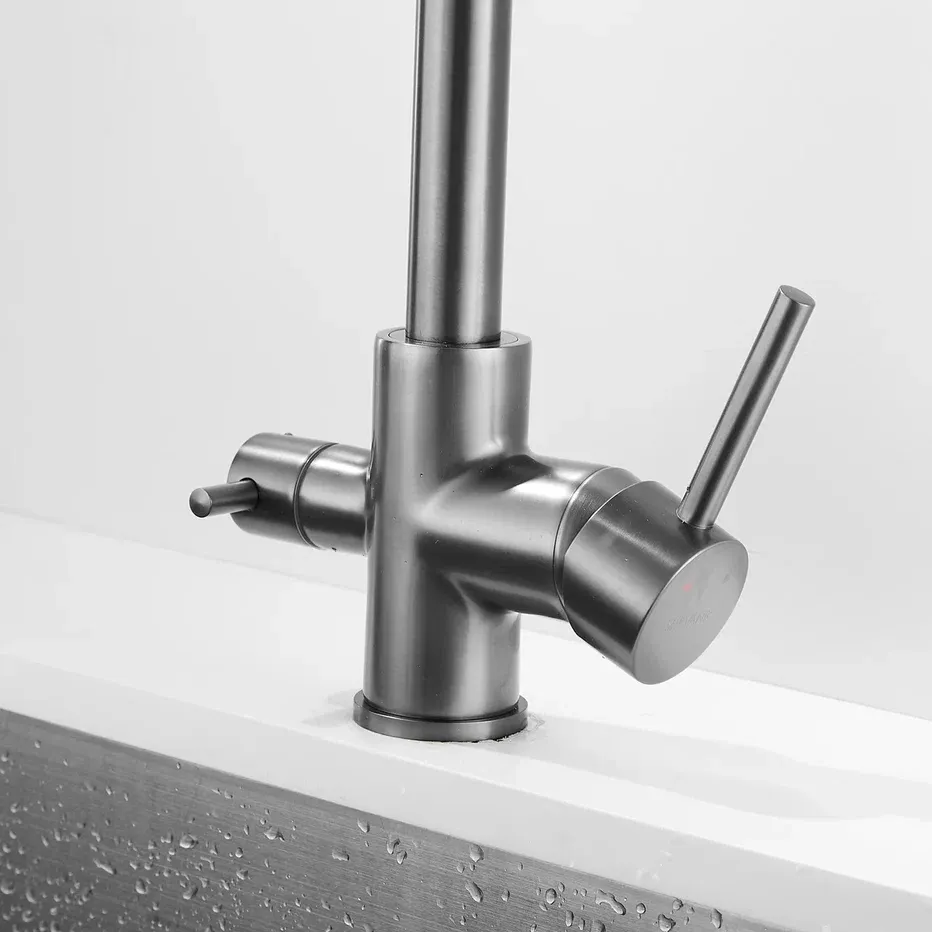 Смеситель для кухни Shevanik S328T с подключением фильтра оружейная сталь