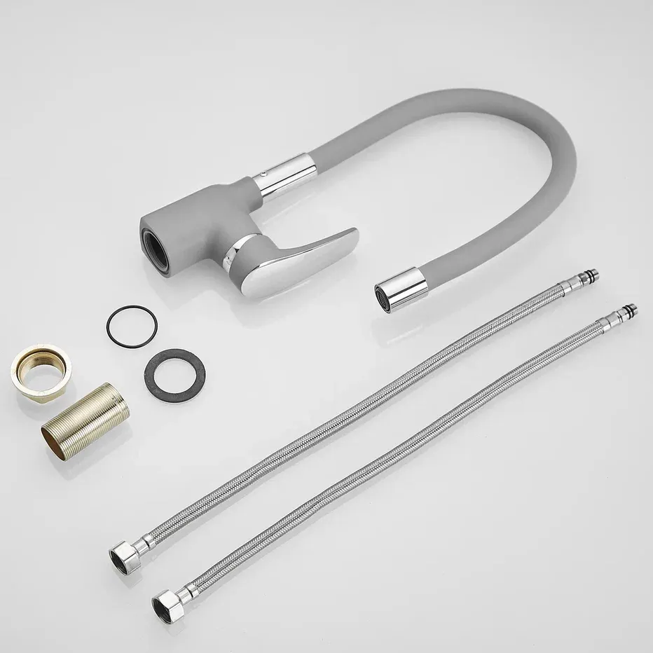 Смеситель для кухни с гибким изливом Shevanik S443-9, серый.Управление: рычажное.Вращение излива: да.Выдвижной излив: нет.Гибкий излив: да.Высота:36,5.