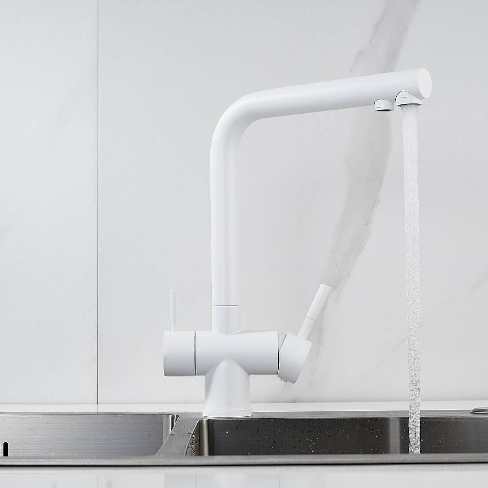 Смеситель для кухни Shevanik S468C с подключением фильтра белый купить