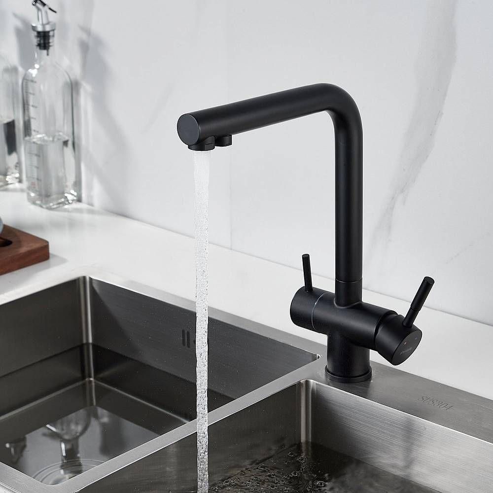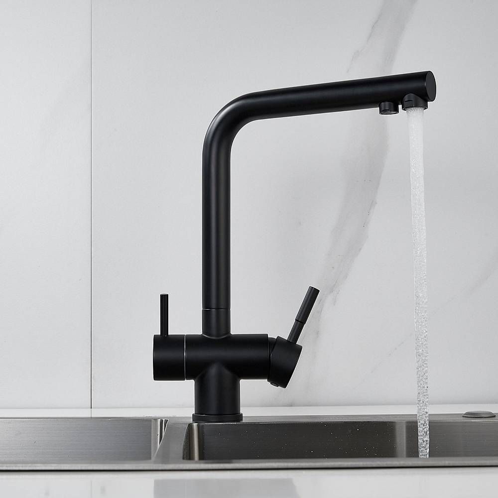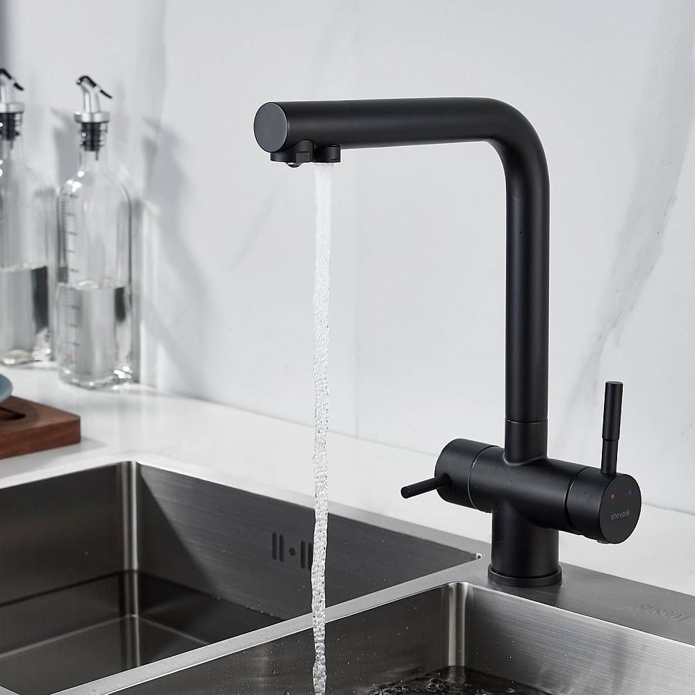 Смеситель для кухни Shevanik S468H с подключением фильтра чёрный купить