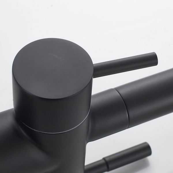Смеситель для кухни Shevanik S468H сочетает в себе стильный дизайн, функциональность и высокое качество. Черный матовый цвет и поворотный излив придают ему современный вид и обеспечивают удобство использования. Материал смесителя - латунь - делает его прочным и долговечным. Встроенный канал для питьевой воды упрощает переключение между обычной и отфильтрованной водой. Не маркая поверхность и высокий корпус обеспечивают легкость ухода за смесителем, а гарантия производителя 5 лет свидетельствует о его надежности