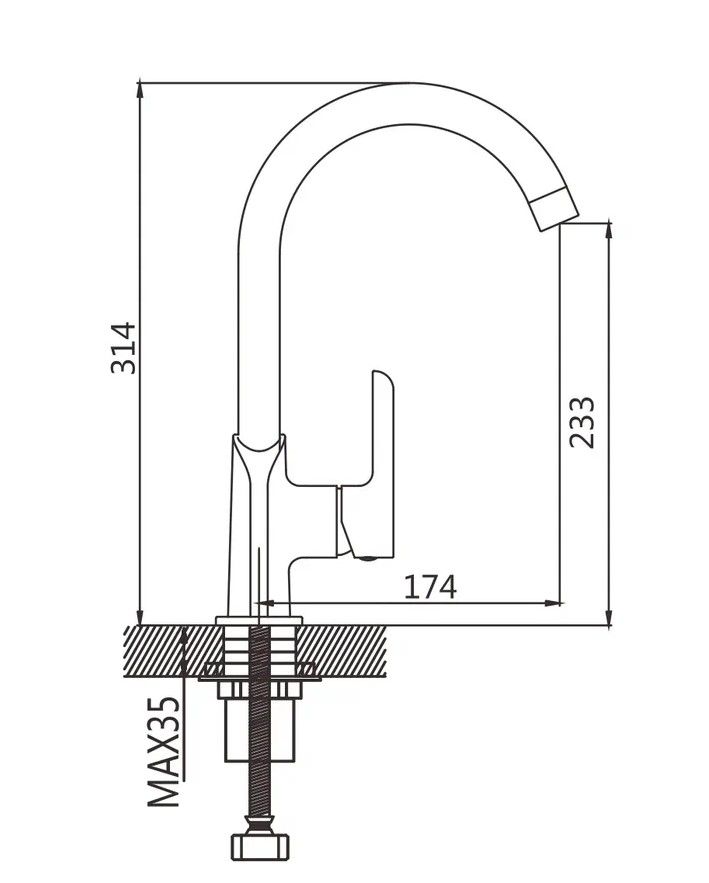 Смеситель для кухни Shevanik S6053H, черный.Управление: рычажное.Вращение излива: да.Выдвижной излив: нет.Гибкий излив: нет.Высота:31,4.