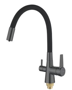 Смеситель для кухни с гибким изливом и подключением фильтра Shevanik S668Y, пепельный/черный.Управление: рычажное.Вращение излива: да.Выдвижной излив: нет.Гибкий излив: да.Высота:33,5.