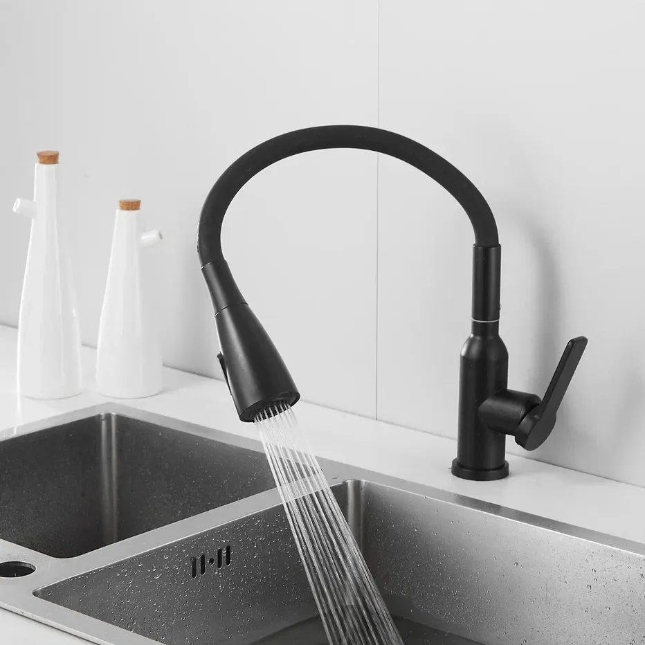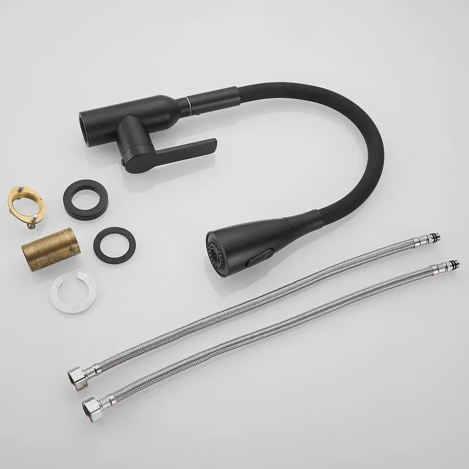 Смеситель для кухни с гибким изливом Shevanik S843H-3, черный.Управление: рычажное.Вращение излива: да.Выдвижной излив: нет.Гибкий излив: да.Высота:45.