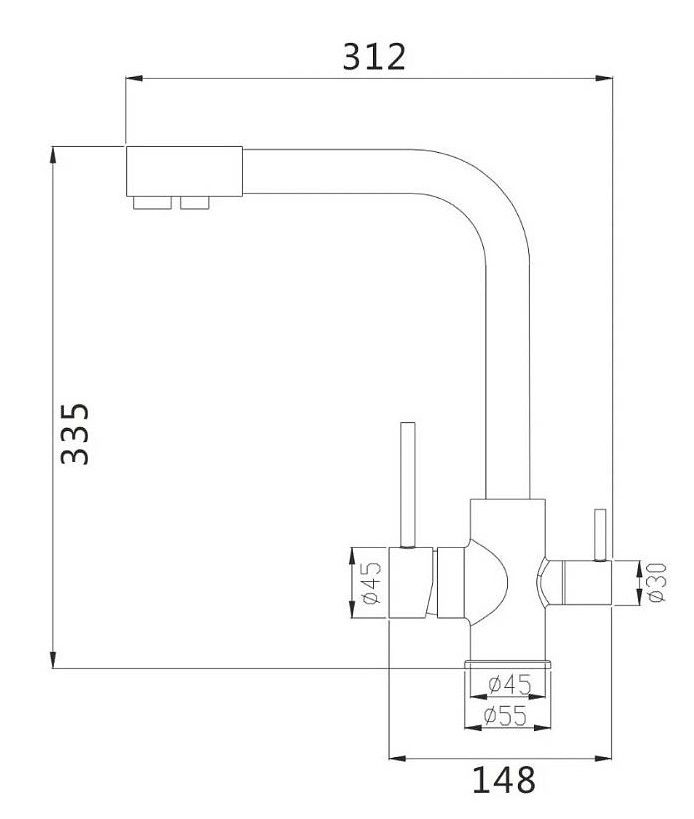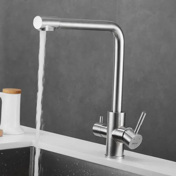 Смеситель для кухни с подключением фильтра Shevanik S868B, сатин.Управление: рычажное.Вращение излива: да.Выдвижной излив: нет.Гибкий излив: нет.Высота:33,5.