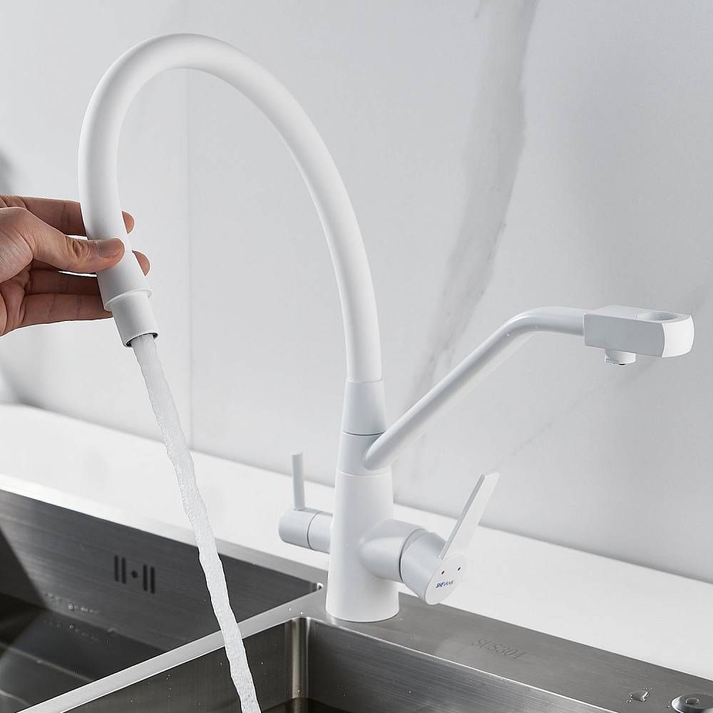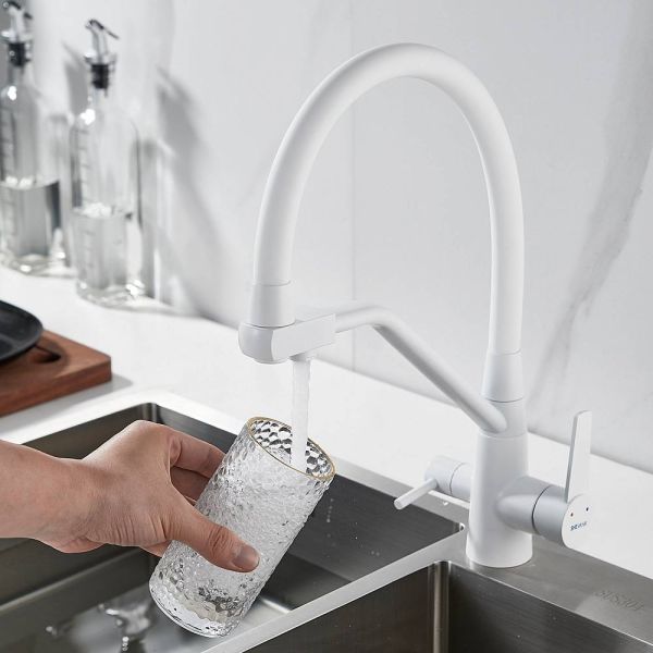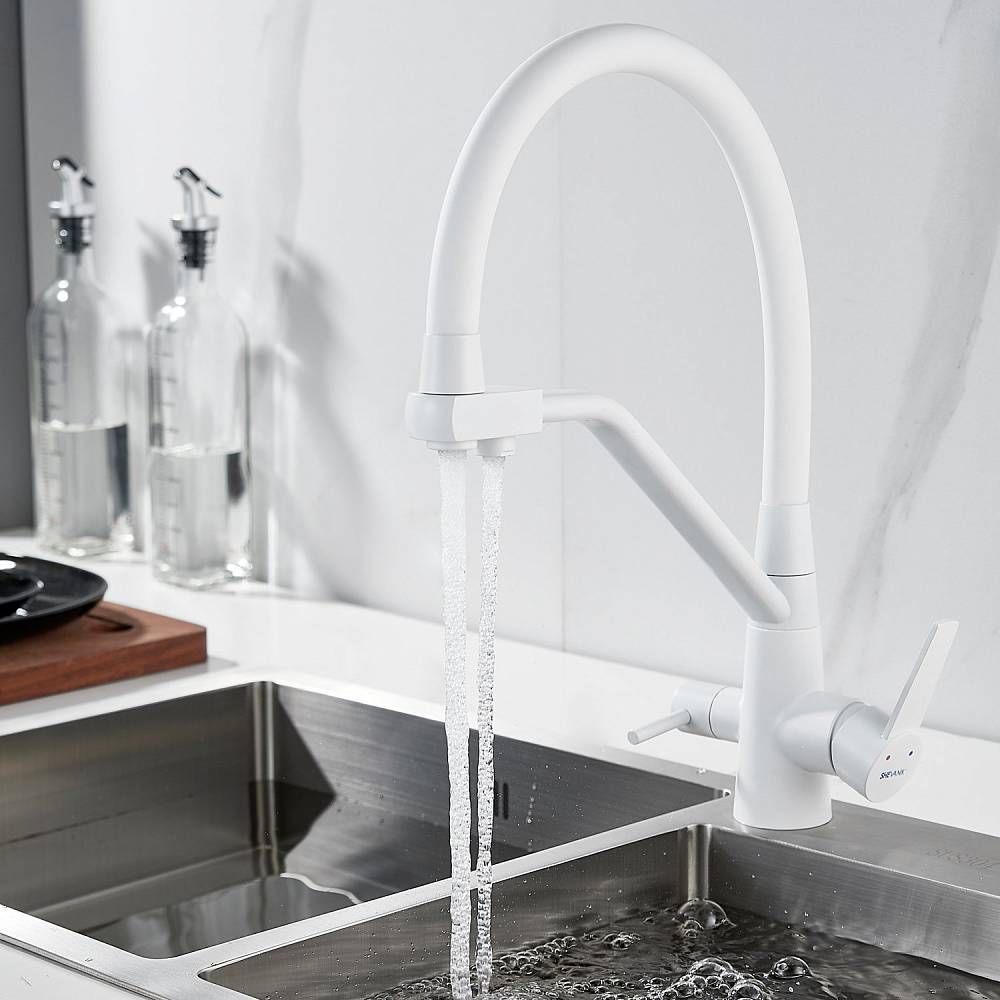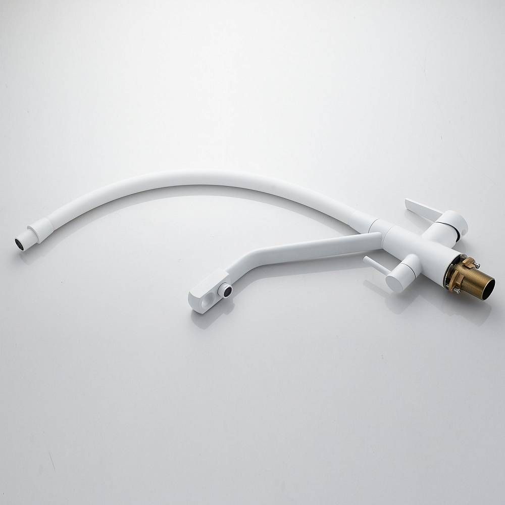 Смеситель для кухни с подключением фильтра и гибким изливом Shevanik S968C, белый.Управление: рычажное.