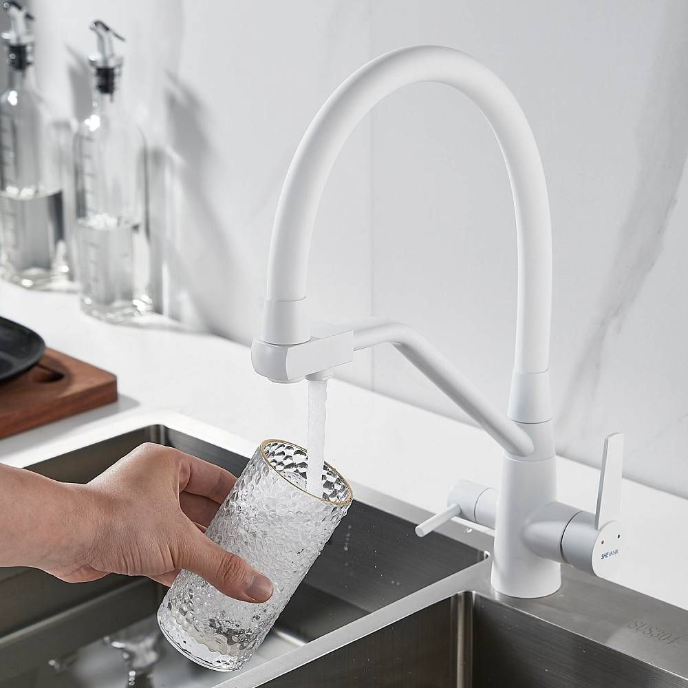 Смеситель для кухни Shevanik S968C с подключением фильтра белый купить