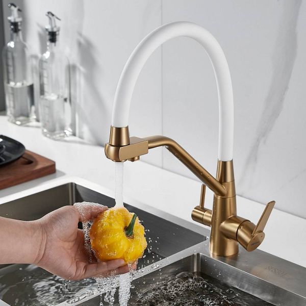 Смеситель для кухни Shevanik S968G с подключением фильтра золото купить