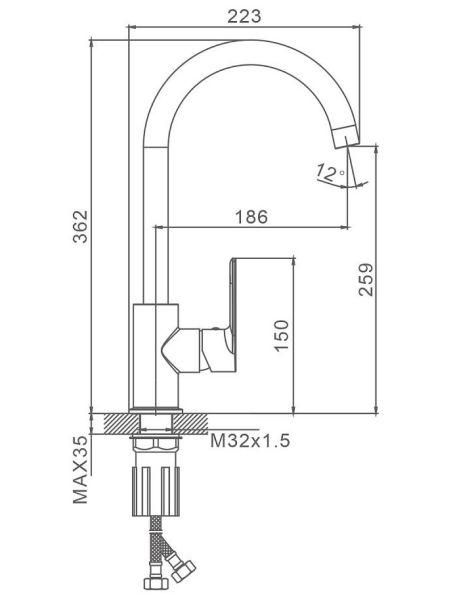 • Высота смесителя: