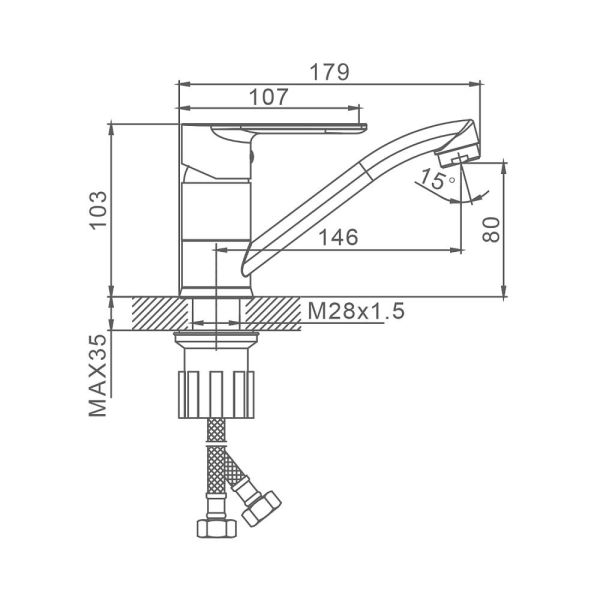 • Высота смесителя: