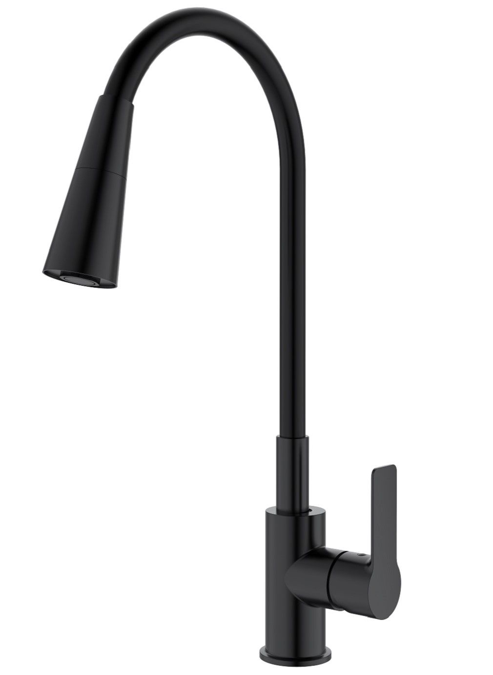 Смеситель для кухни Splenka S06.43.06 идеально подходит для кухонной мойки, раковины любого типа. Цвет: черный. Смеситель имеет 2 режима: поток воды и душ. Кран с гибким изливом имеет необычный внешний вид и особую конструкцию. С помощью гибкого шланга можно самостоятельно регулировать глубину выноса и высоту излива, что позволит избежать лишнего разбрызгивания воды. Также с помощью силиконового излива не составит труда добраться до всех мест в мойке, а также упрощает мытье посуды и продуктов. Стильный латунный смеситель имеет свойство шумоподавления.