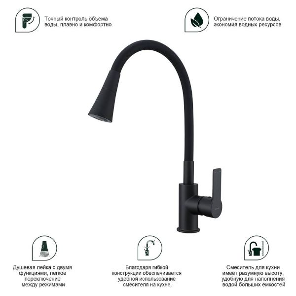 Смеситель для кухни Splenka S06.43.06 чёрный купить