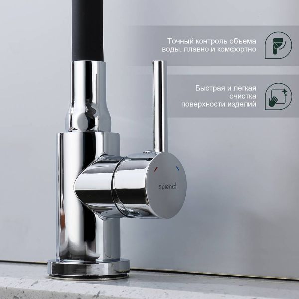 Смеситель для кухни Splenka S201.4406. Цвет: хром. Смеситель для кухни сочетает в себе удобную конструкцию, простоту в установке, универсальный современный дизайн и доступную цену за высокое качество.Смеситель превосходно дополнит интерьер любой кухни. В набор входит гибкая подводка размером 1/2". Монтаж на гайку. Тип подводки – гибкий. Обслуживание одного потребителя. Без температурных ограничений. Монтаж на одно отверстие.
