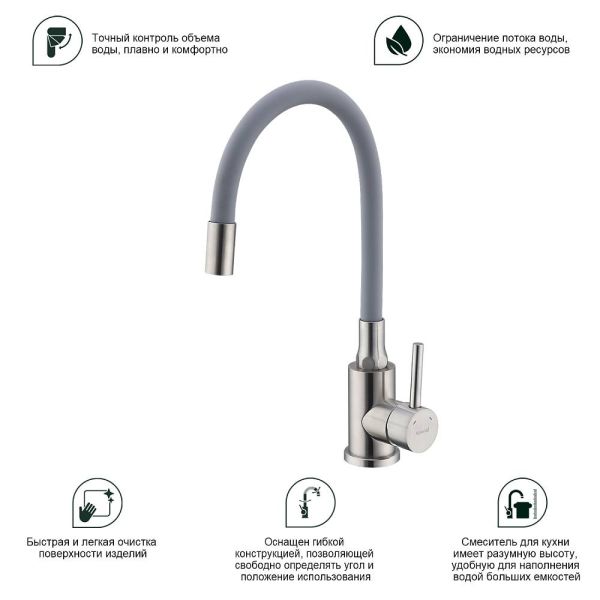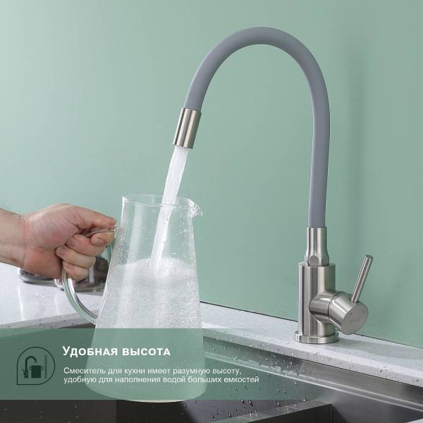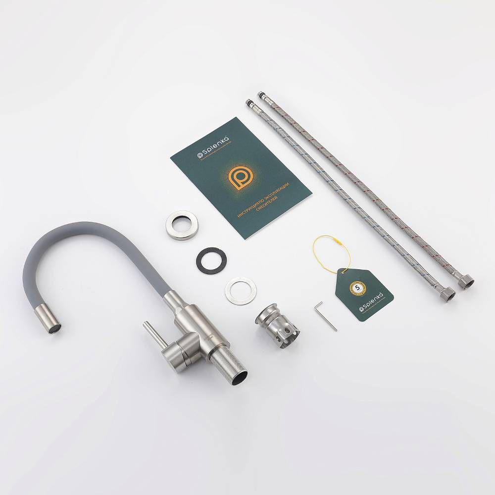 Смеситель для кухни Splenka S201.4407.05. Цвет: сатин. Смеситель для кухни сочетает в себе удобную конструкцию, простоту в установке, универсальный современный дизайн и доступную цену за высокое качество.Смеситель превосходно дополнит интерьер любой кухни. В набор входит гибкая подводка размером 1/2". Монтаж на гайку. Тип подводки – гибкий. Обслуживание одного потребителя. Без температурных ограничений. Монтаж на одно отверстие.