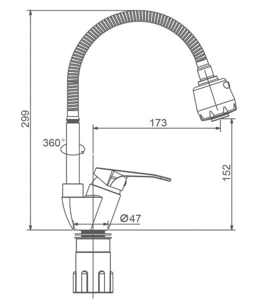 • Высота смесителя: