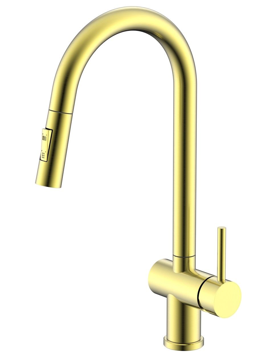 Смеситель для кухни Splenka S204.49.03 с выдвижным изливом золотой сатин