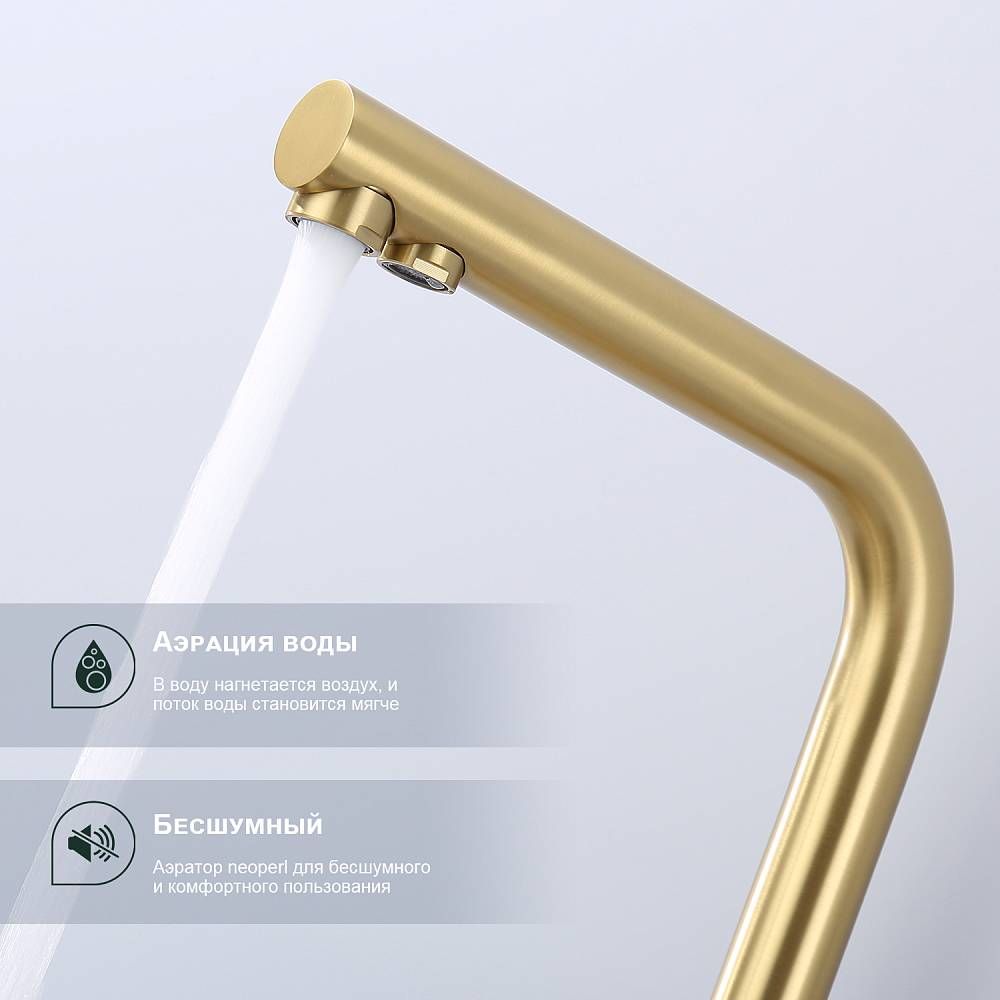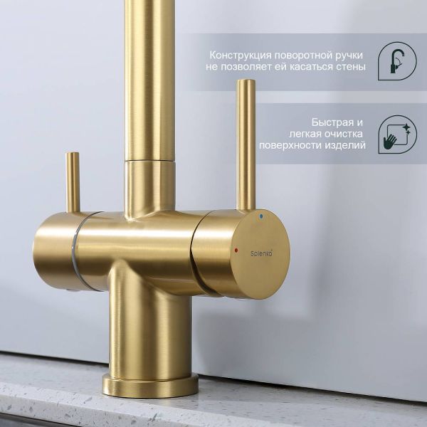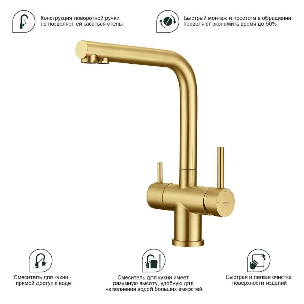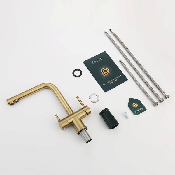 Смеситель для кухни Splenka S70.61.03 с подключением фильтра золотой сатин
