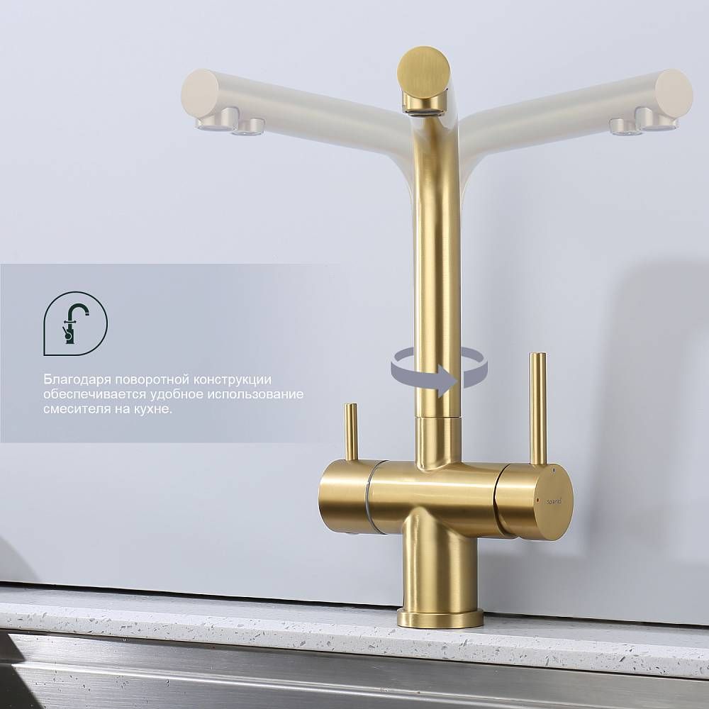 Смеситель для кухни Splenka S70.61.03 с подключением фильтра золотой сатин купить