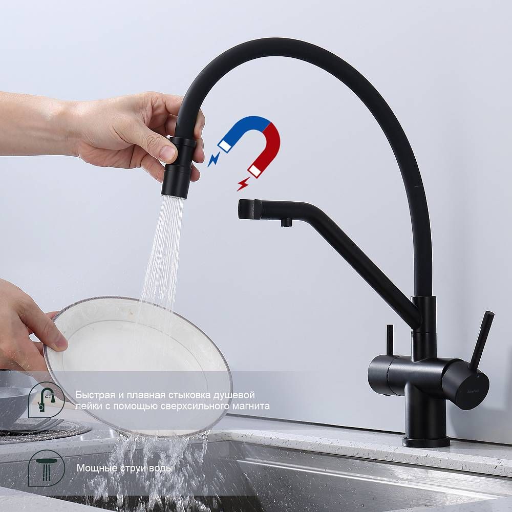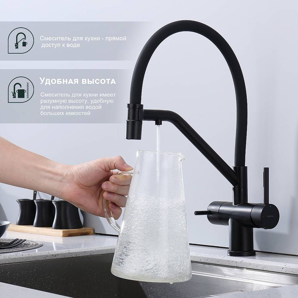 Смеситель для кухни Splenka S70.62.06 с подключением фильтра чёрный купить