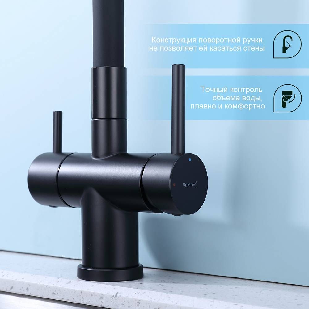 Смеситель для кухни Splenka S70.64.06 с подключением фильтра чёрный купить