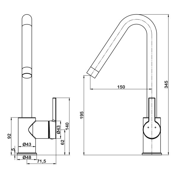 • Высота смесителя: