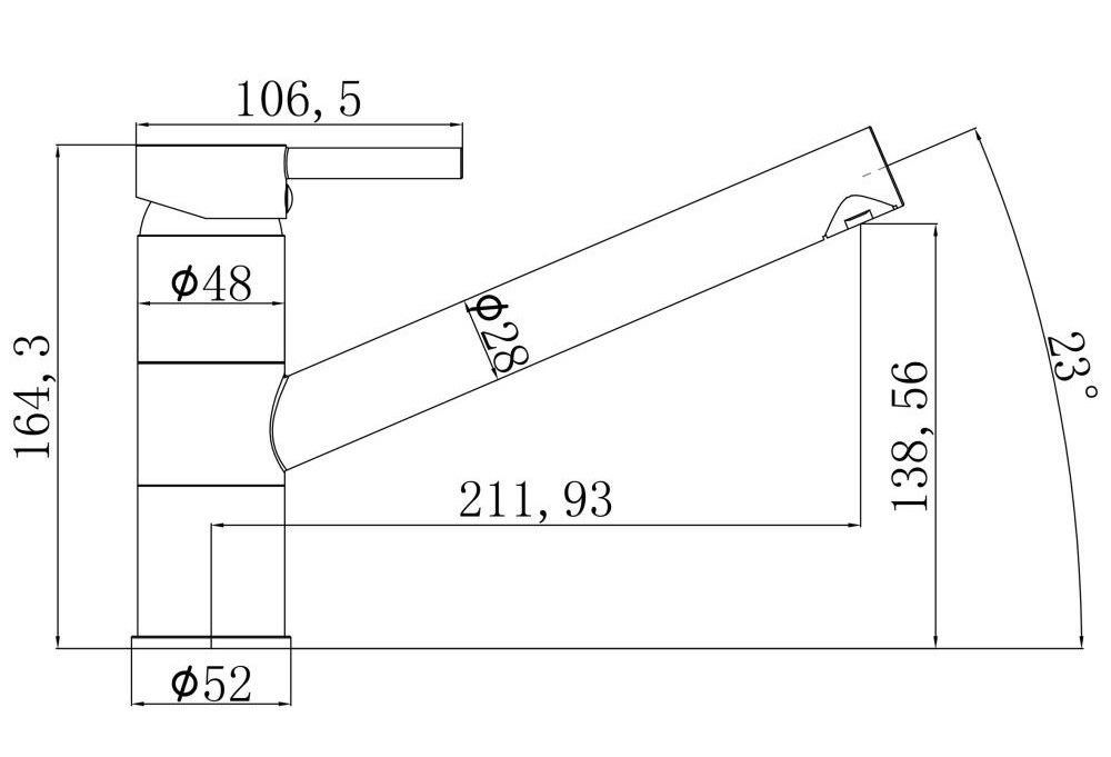 • Высота смесителя: