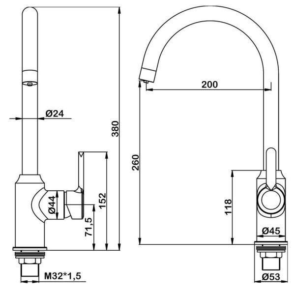 Высота смесителя:38