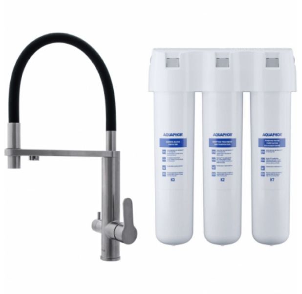 Смеситель для кухни Swedbe Selene Plus 8440K в комплекте с фильтром Аквафор Кристалл нержавеющая сталь/чёрный