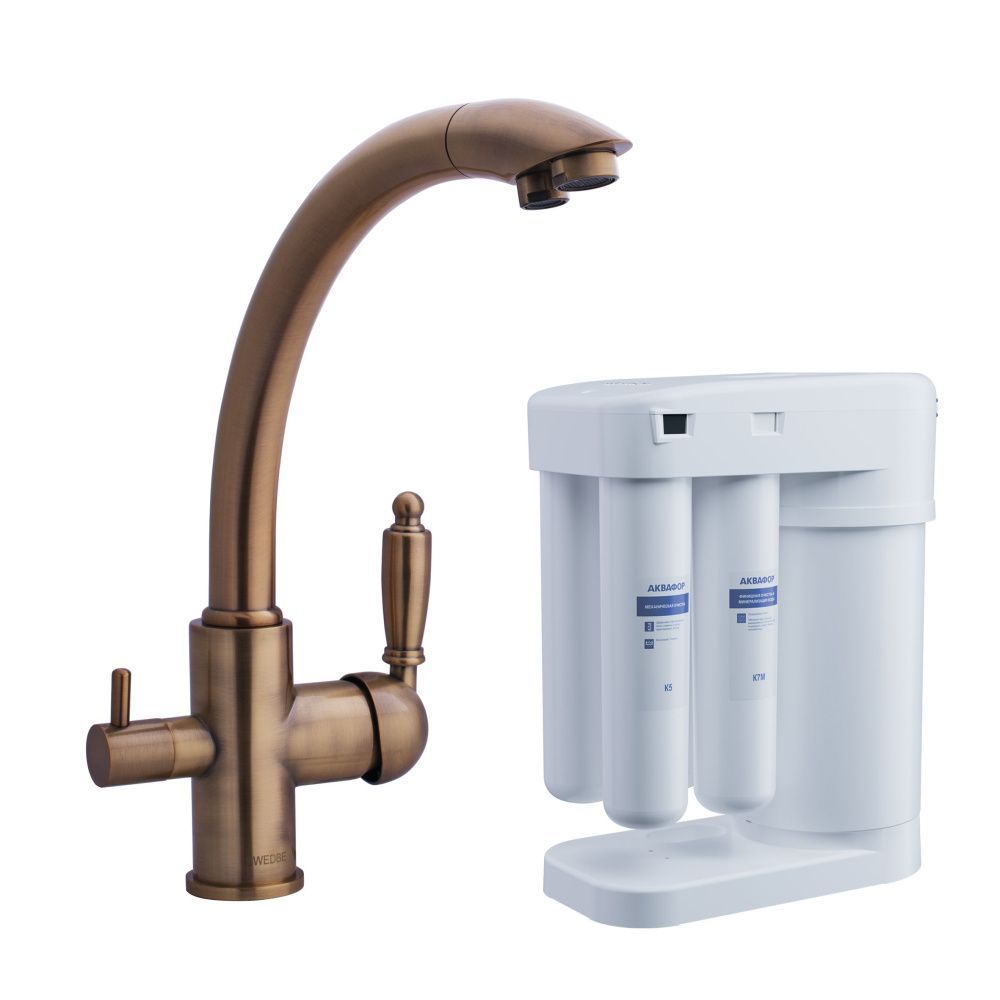Смеситель для кухни Swedbe Selene Plus K8043M в комплекте с фильтром Аквафор Морион бронза купить