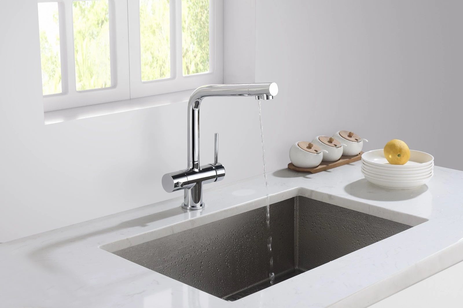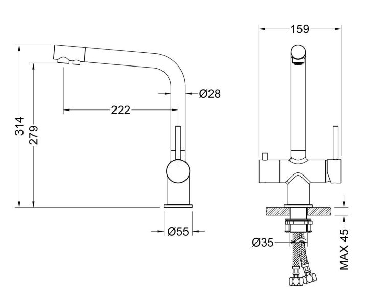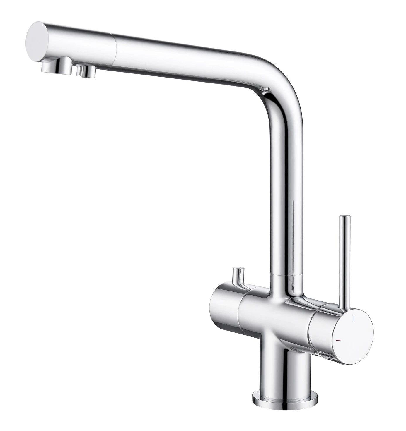 Смеситель Timo Saona 2396 с системой подключения фильтрованной воды относится к премиальному сегменту, предназначен для монтажа на кухонную мойку или столешницу. Высокий излив подходит для моек с двумя чашами, а также позволяет справляться с мытьем габаритной посуды. Удобное (вертикальное) расположение рычага смесителя в крайнем положении "холодный старт", позволяет не задевать ручкой за стеновые панели, фартук, предметы, которые находятся за смесителем. Картридж с функцией "холодный старт" работает в диапозоне 90 градусов, рычаг установленный в исходное положение (вертикально) при открытии подает только холодную воду, а не 50% холодной воды плюс 50% горячей, позволяя экономить до 30% расход горячей воды. В нижней части смесителя установлены 2 трубки с адаптером (можно подключиться к любой из них) для соединения с трубкой фильтра. Подача фильтрованной воды осуществляется поворотом ручки дивертора, расположенной слева на корпусе смесителя (от себя или на себя) в зависимости от того какую из трубок вы выбрали для подключения с трубкой фильтра. Вставьте заглушку (входит в комплект) до упора в свободную трубку. Положение 12-00 дивертор выключен. Сложностей монтажа не возникает при установке смесителя опытным сантехником. Внимательно изучите инструкцию по монтажу и эксплуатации.
