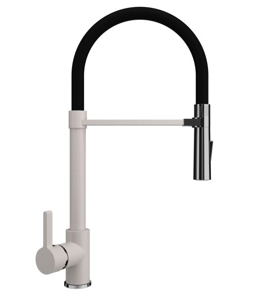 Смеситель ULGRAN U-024 – это стильный и современный кухонный смеситель с высоким гибким изливом черного цвета. Материал корпуса выполнен из высококачественной латуни, сверху корпус смесителя имеет специальное черное матовое покрытие.