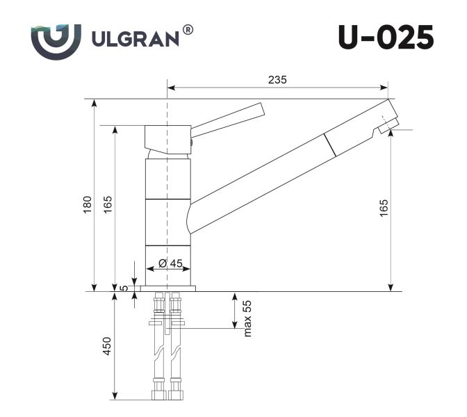 ULGRAN U-025 – удобный классический кухонный смеситель с низким поворотным изливом. Ма... Подробнее