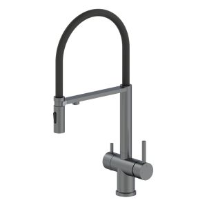 Смеситель для кухни Wonzon & Woghand WW-88458009-BGM с гибким изливом и подключением фильтра тёмный графит