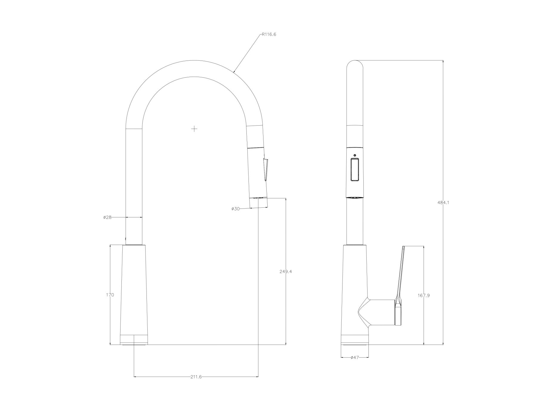 Смеситель для кухни с выдвижным изливом WONZON & WOGHAND, Белый матовый (WW-A20782-MW)