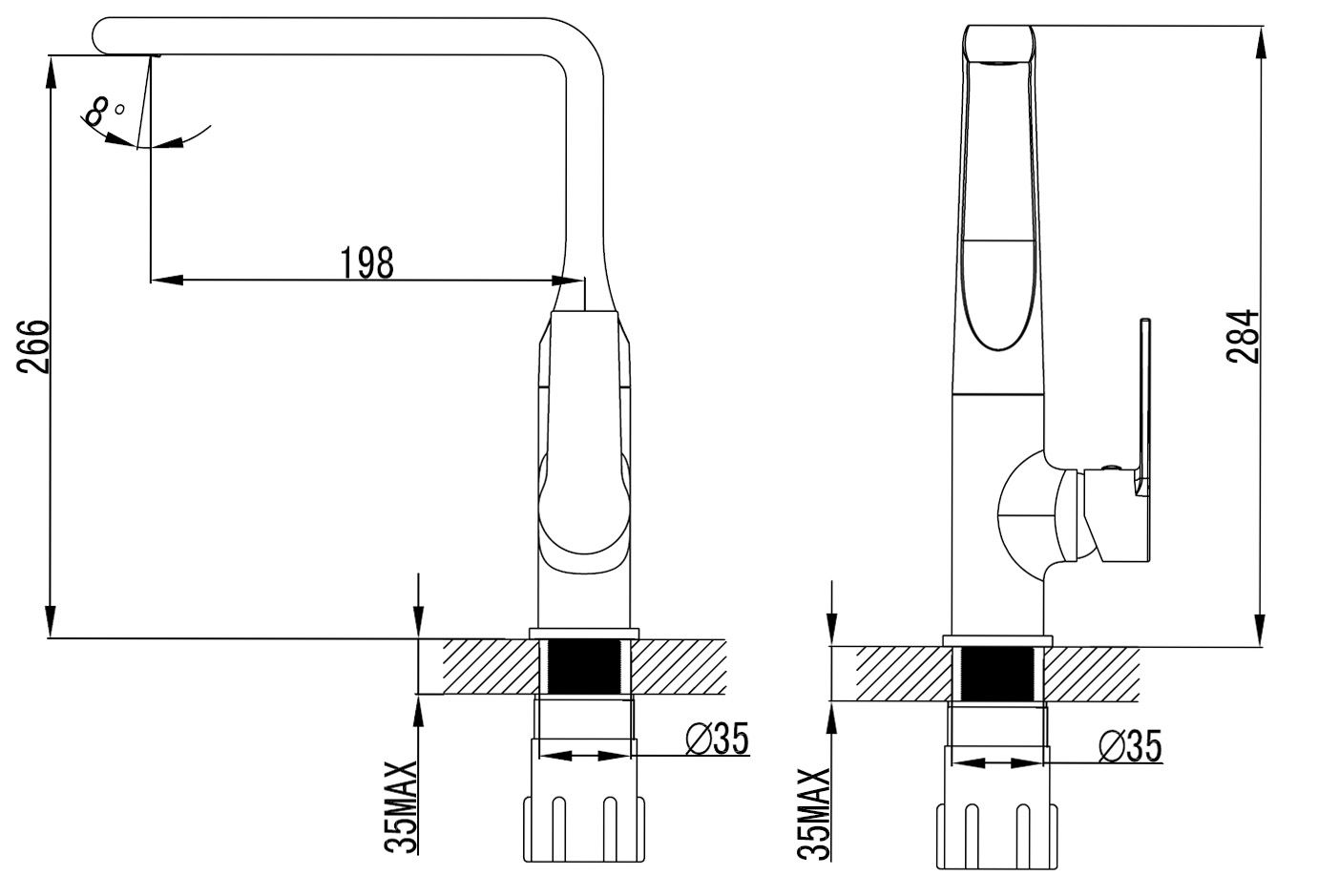 • Высота смесителя: