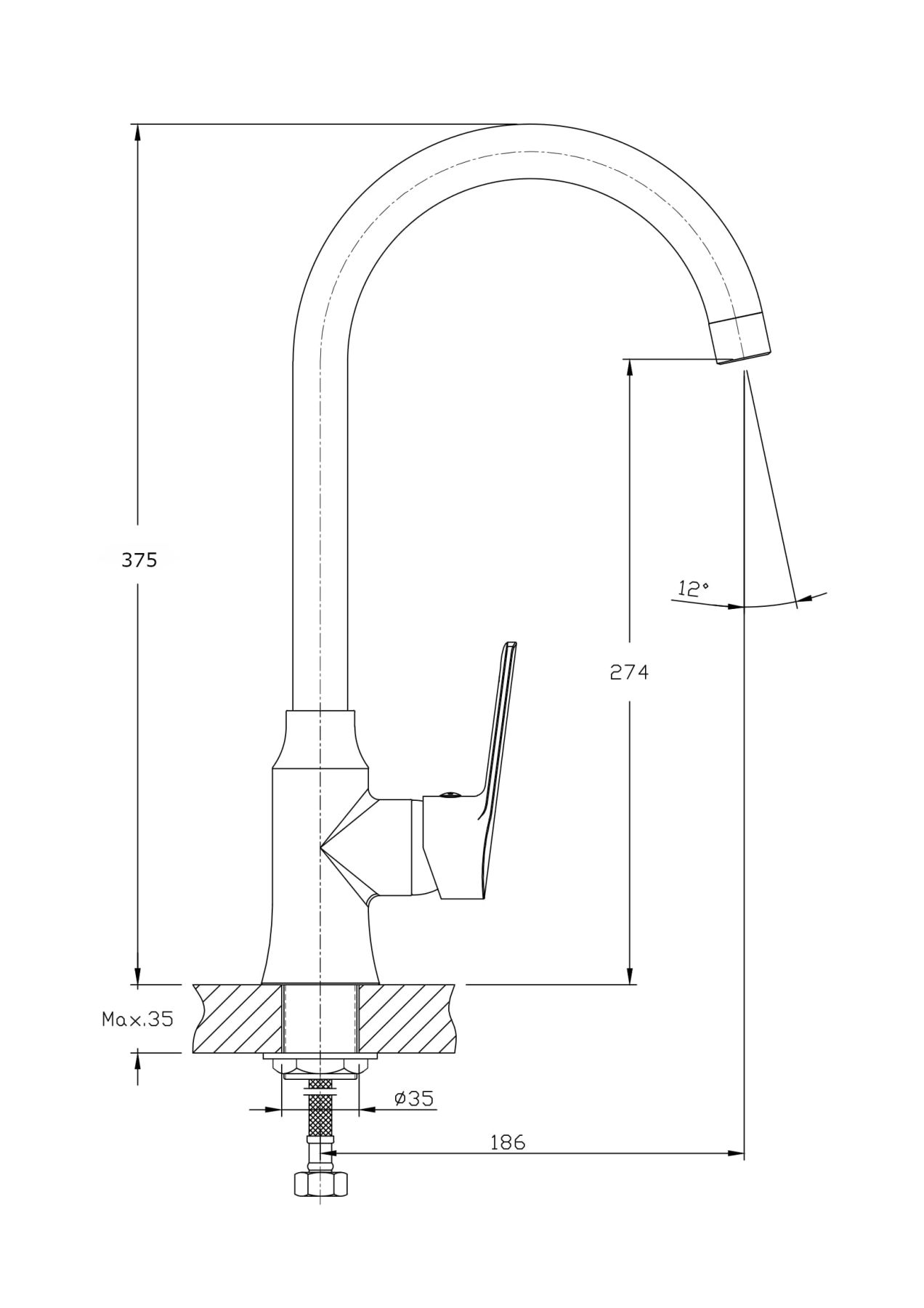 Смеситель для кухни с поворотным изливом RUSH Balearic арт. BA3935-22 с металлической ручкой имеет рычажное управление. В смеситель установлен картридж D-35 (RSH102) с керамическими пластинами. Высота смесителя 375 мм. Излив поворотный 360гр, 186 мм. Высота излива до аэратора 274 мм. Аэратор изготовлен из пластика с нержавеющим корпусом, угол наклона аэратора- 12 гр. В комплекте гибкая подводка с латунными гайками 35см - 2 шт, присоединительная гайка S-32(34)мм., втулка-31мм, фум-лента, индивидуальный пакет, паспорт, гарантийный талон.