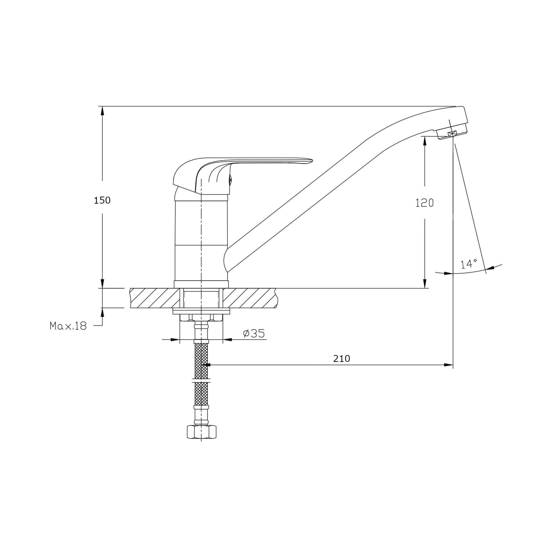 • Высота смесителя: