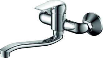 Смеситель настенный для кухни и раковины с поворотным изливом RUSH Fiji арт. FI1835-28 с металлической ручкой и имеет рычажное управление. В смеситель установлен картридж D-35 (RSH102) с керамическими пластинами. Излив поворотный (360гр) 216 мм. Аэратор изготовлен из пластика с нержавеющим корпусом. В комплекте жесткая подводка, латунные эксцентрики, индивидуальный пакет, паспорт, гарантийный талон.