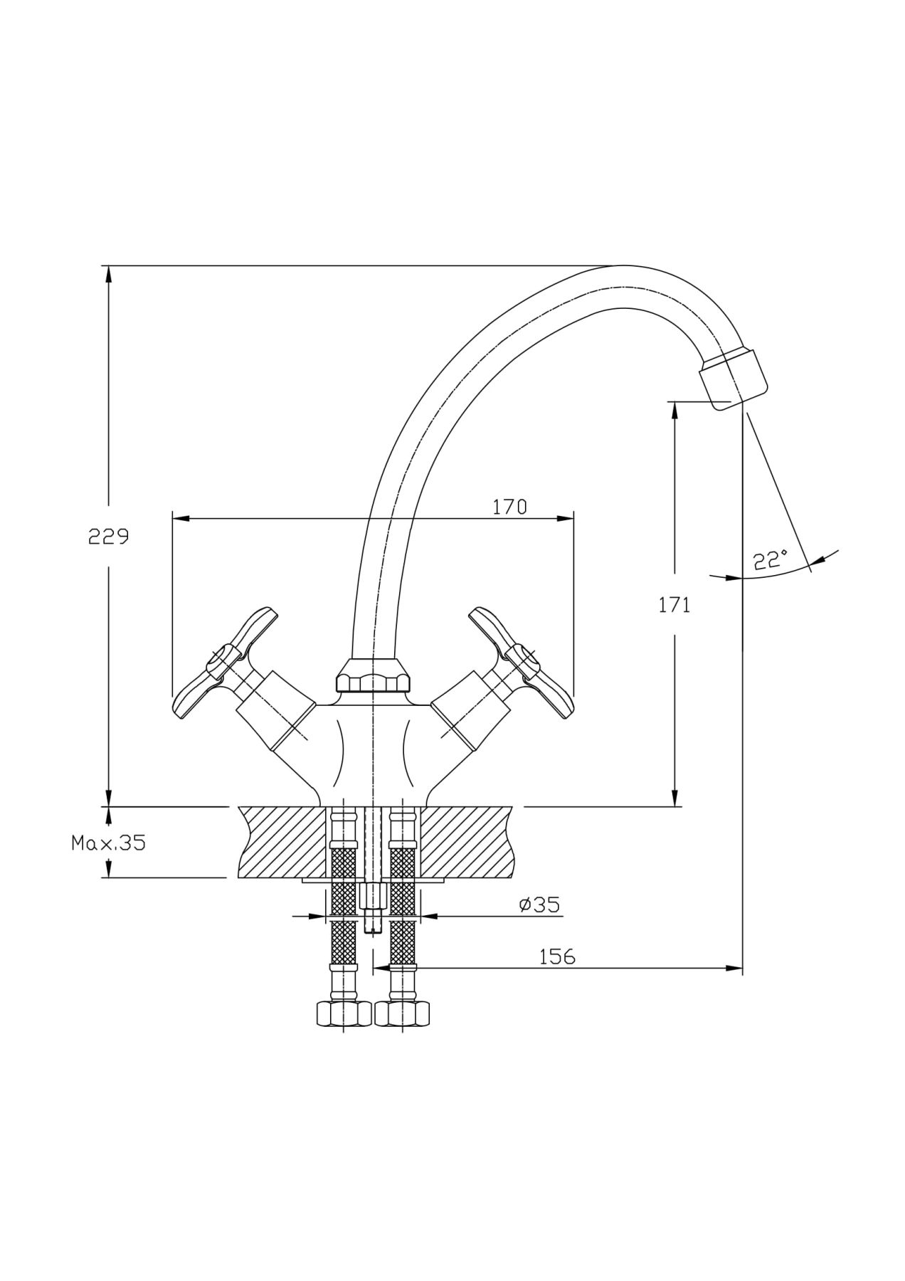 Смеситель для кухни с высоким, поворотным изливом RUSH арт. SA5350-22 с металлической ручкой из коллекции Sakhalin изготовлен из высококачественной латуни и имеет вентильное управление.В смеситель установлены кран-буксы (RSH502) с керамическими пластинами. Высота смесителя 229 мм. Излив поворотный (360гр), 182 мм. Высота излива до аэратора 171 мм. Аэратор изготовлен из пластика с нержавеющим корпусом, угол наклона - 22 гр. В комплекте универсальная присоединительная группа (шпилька-2шт), гибкая подводка с латунными гайками 35см - 2шт, фум-лента, индивидуальный пакет, паспорт, гарантийный талон.