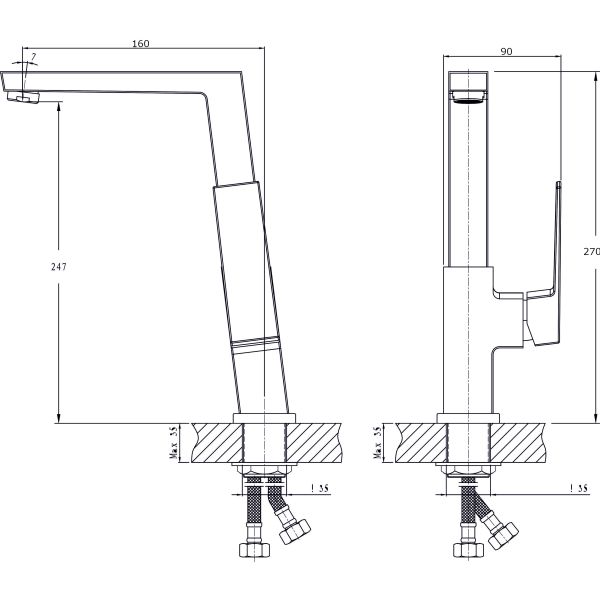 • Высота смесителя:
