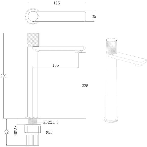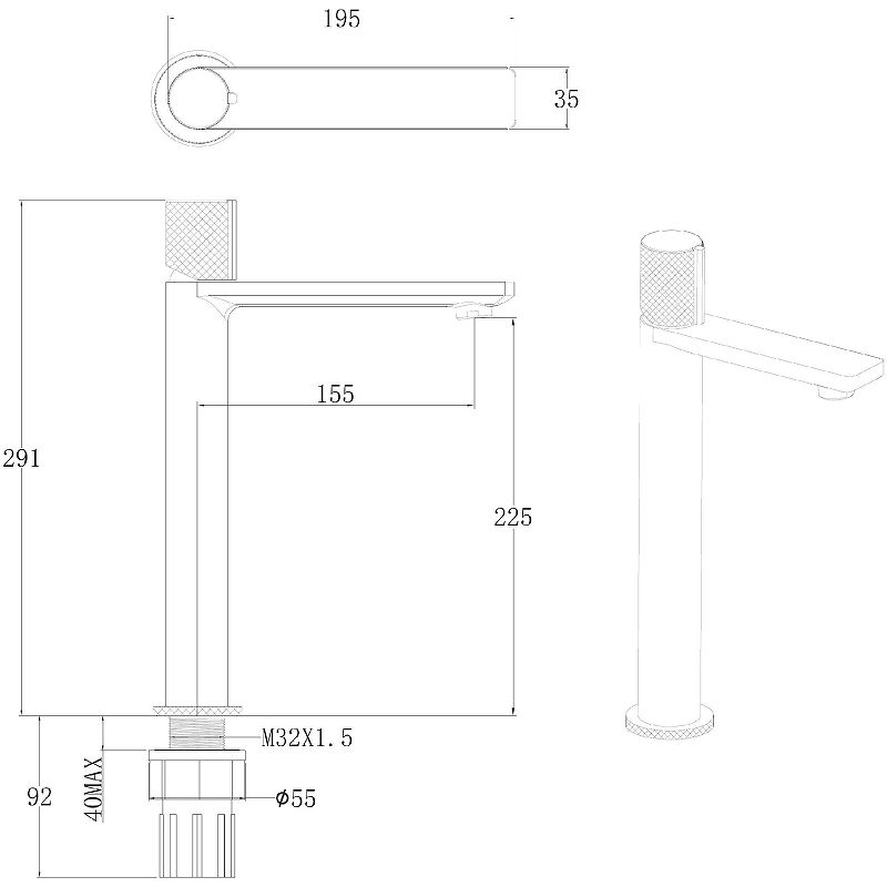 • Высота смесителя: